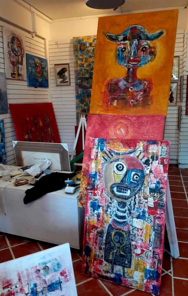 Parmi eux, Charlie Simon, a su se faire sa petite place parmi l’élite des peintres dominicains. Pour preuve, s’il en fallait, son inscription au très select CODAP (College Dominicain d’Art) filiale de l’Unesco. Son atelier-galerie ouvert à tous, se situe au Paseo, à côté de la Cave à vins. C’est avec beaucoup de gentillesse qu’il nous y accueille et nous guide à travers son oeuvre très hétéroclite qui oscille,sans jamais choisir, entre naif, pointillisme, impressionnisme. Sa peinture-fusion comme il se plait à la qualifier est inspirée par son vécu, mais, phénomène de pure création et résultat de l’imagination d’un artiste sensible, ses toiles sont remplies d’une forte dose d’émotion. Son travail instinctif qui confère un caractere ingénu aux oeuvres , s’articule autours du glamour de ses exquis visages de femme et d’un impressionnisme étonnamment juste et délicat. Charlie, érudit et intarissable en matiere d’art, voue une passion à Picasso, génial « touche a tous » , innovateur insatiable, à l’aise dans tous les courants picturaux. Un peu lui donc. S’il en a fait son « modèle », il apprécie également l’art poétique de Chagall et la folie de Jean Dubuffet.