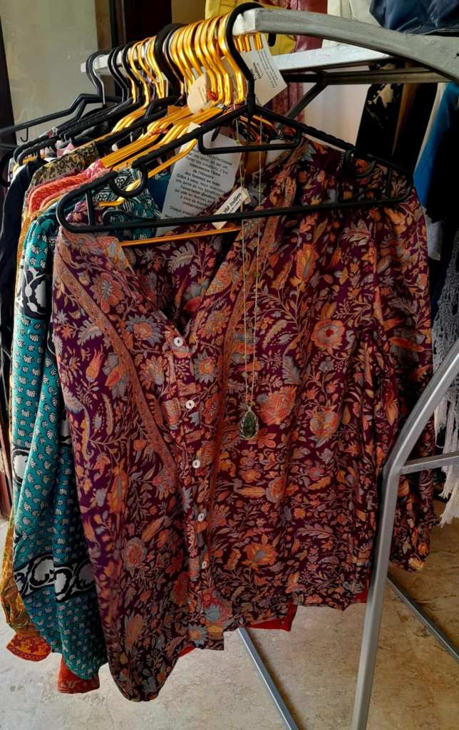 Née du génie créatif de deux jeunes femmes passionnées et passionnantes, Armelle et Celine, cette audacieuse marque qui fait vibrer le cœur des amoureuses de beau et d’authentique fait la part belle à des vêtements singuliers, confectionnes à la main en Inde à partir de saris de soie ou crêpe de soie recycles. Les pièces, délicieuses et uniques, kimonos, robes, longues jupes fluides, tuniques vaporeuses, chemisiers tout doux, pantalons confort ou encore paréos se déclinent, élégantes, pratiques et durables, alliant style moderne et conscience écologique. Les inspirations mêlant la richesse des traditions textiles indiennes à une conscience écologique moderne confèrent à chaque création une histoire et une âme particulières.