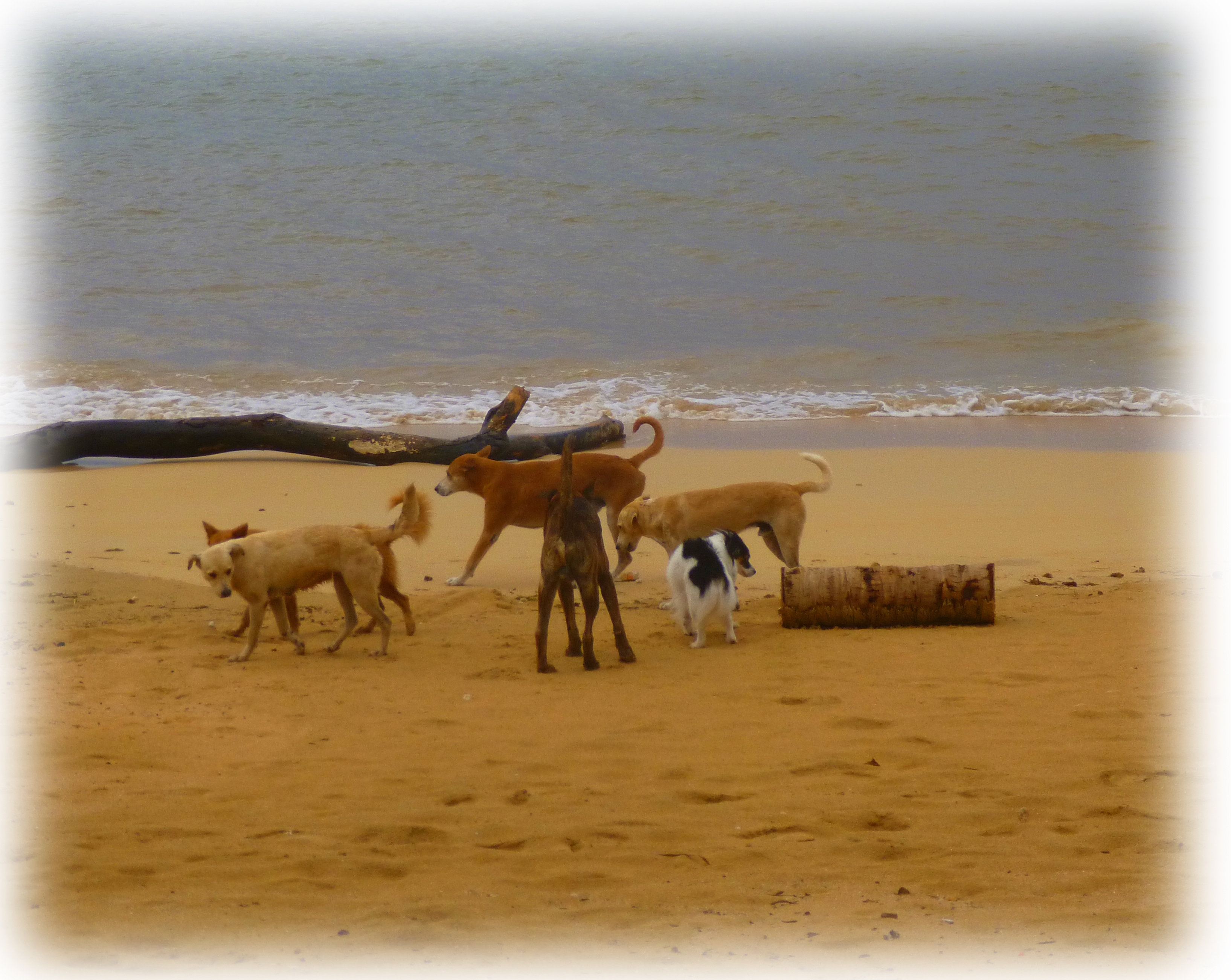 C’est vrai, je l’avoue, ce mois d’août est plutôt, disons…. pluvieux! Pas un jour sans qu’il nous tombe une averse sur la tête. Pas commun, je ne crois pas me souvenir d’été aussi merdique. Pauvres touristes, pas de chance…. Parce que pour nous, chaque goutte de pluie bien fraîche qui nous tombe sur la tête …. et sur le moral…. refroidit l’océan et éloigne les cyclones. Et oui, à quelque chose malheur est bon. Je ne voudrais pas passer pour une chipie, mais je vois la pluie d’un oeil différent des touristes ou des résidents tout juste arrivés et anxieux de voir un temps mitigé. Bon en même temps, pas de panique, le ciel de plomb fait immanquablement place à un superbe ciel bleu qui fait vite la place à un ciel…. Bon j’arrête. En attendant, entre deux gouttes de pluie, un petit tour sur la plage avec Tatoo qui s’est déniché une belle troupe d’amis. Toujours peur, il a tellement l’habitude de partager sa vie avec ses 9 frères et soeurs qu’il ne se rend pas compte qu’il est beaucoup plus petit que ces vagabonds de la plage, mais je garde un oeil sur eux de loin et visiblement tout se passe bien. Font tous pipi sur le tronc d’arbre et le vainqueur sera le dernier, et le vainqueur est… Tatoo. Bien sûr. Un petit coucou à Eliot qui a bien aimé les aventures de Tatoo et de sa bande de copains.