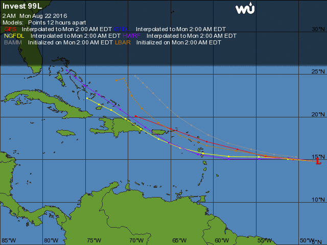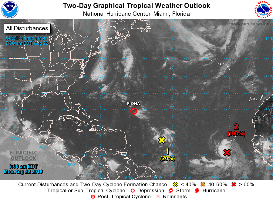 Ben oui, il pleut et c’est plutôt bienvenu, il faisait vraiment chaud hier, trop, la piscine frôlait les……38 degrés, presque insupportable. La plage était noire de monde et les petits bars du bord de l’eau se frottaient les mains. Donc, un peu d’eau, c’est pas plus mal, d’autant plus que le lundi, c’est de toute façon un jour gris non? Bon. Pendant ce temps les deux perturbations atlantiques continuent leur petit bonhomme de chemin. La première s’est un peu essoufflée mais, elle peut reprendre du poil de la bête en s’approchant de nos côtes si le bon Dieu lui prête vie. On ne la perd pas de vue (premier shéma). La seconde est une grosse vilaine dépression qui a selon les spécialistes 100% de chance de se transformer en cyclone dans les prochaines 48 heures. Chuttt! pas de panique Nadia, elle est encore très loin dans l’océan. Cependant, plus gênant…. elle suit quand même sa copine de près et ça c’est pas terrible. Vous savez ce que c’est les copines, ça aime « papioter » ensemble. Faudrait pas qu’elle se rapproche trop. Pour l’instant la plus méchante prend une route plus au nord, mais…… Bon, je ne les quitte pas des yeux et vous tiens au courant. On fait comme ça Nadia!