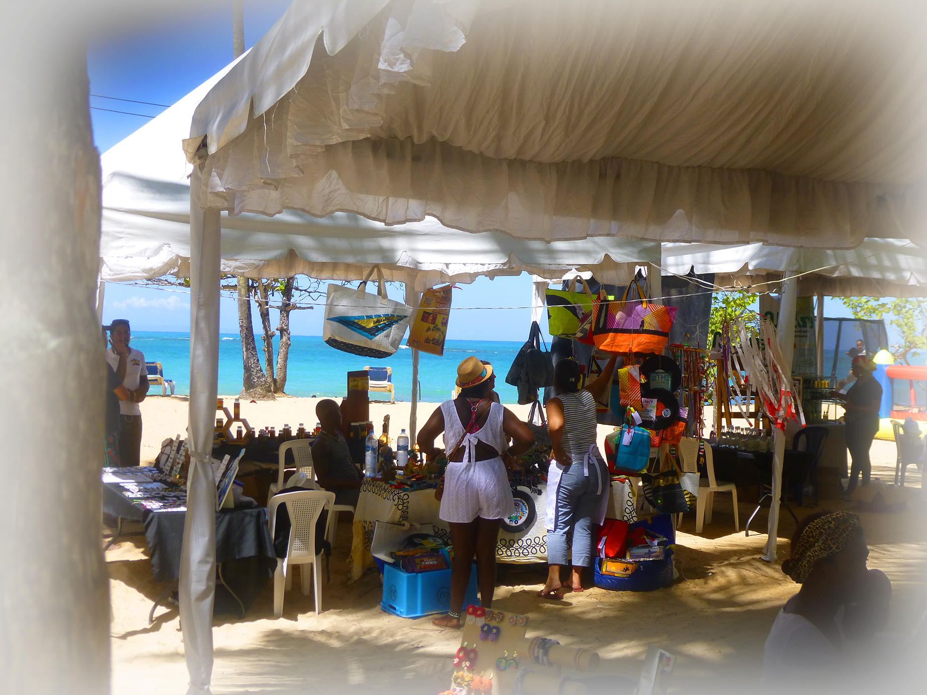 La plage se transforme alors en un immense campus coloré, abritant de jolis pavillons chatoyants. La 8ème édition est une totale réussite. Dans une ambiance conviviale et bon enfant, des centaines de personnes ont répondu présent. Les badauds ébahis se baladent au milieu des stands décorés avec amour les transportant en un clin d’œil en Haiti, au Chili, en République Tchèque, au Mexique, en Argentine, Italie, aux Etats-Unis, en Belgique, en France ….. et bien sûr en République Dominicaine. Objets artisanaux, jolis bijoux et surtout gastronomie de chaque contrée, on n’a pas trop de toute l’après-midi pour en prendre pleins les yeux et les papilles. Les enfants joyeux se font maquiller et le soir, c’est musique et danse sur le podium géant face à la mer. Un grand bravo aux organisateurs et à tous les bénévoles animant avec sourire et gentillesse les différents stands.