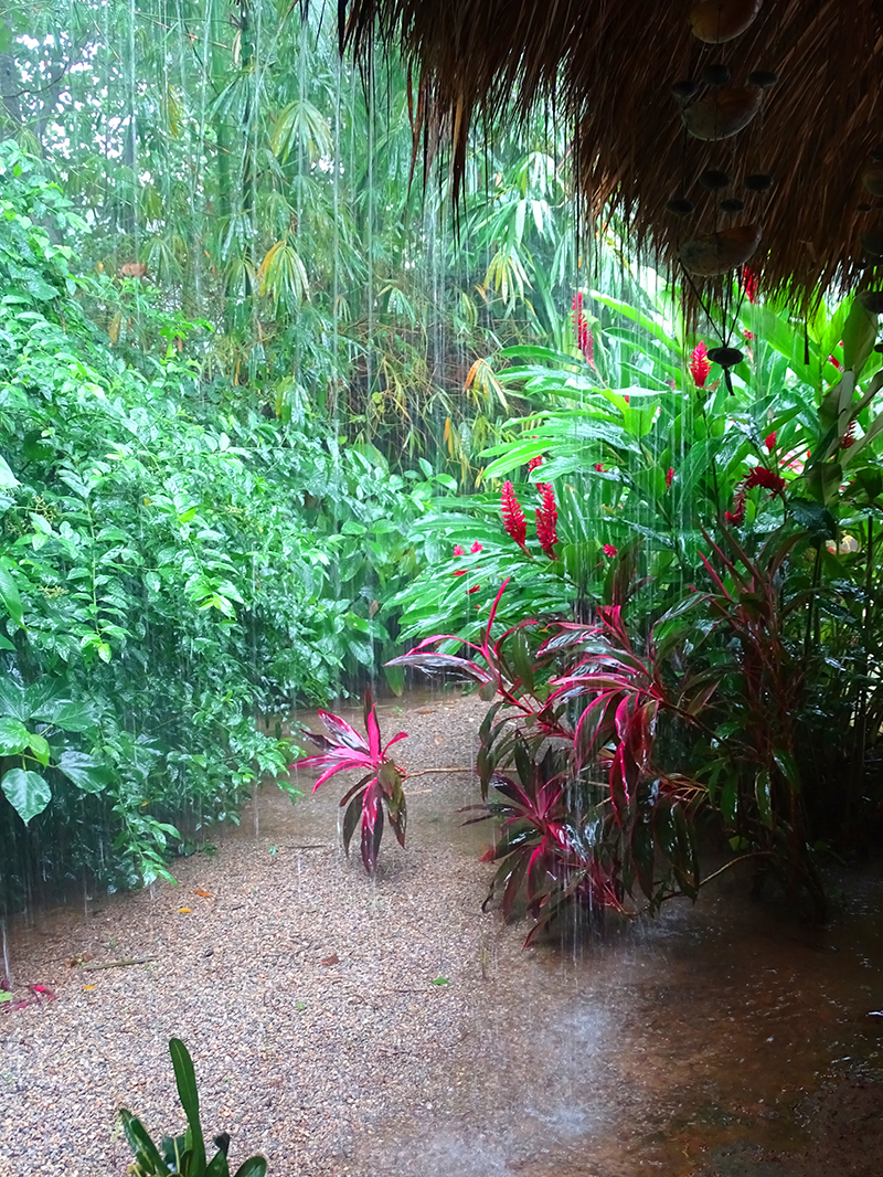 Fripon et un brin cabotin, un rayon de soleil malicieux a réussi, hier, à me sortir de ma douce tanière. Une belle occasion de prendre la température du village malmené par des semaines de grosse pluie sournoise. Au bout de mon chemin chaotique, plein d’eau, de bosses et de trous, la plage de Las Ballenas reprend doucement vie. Mis à part quelques gros troncs d’arbres léchés par une mer plutôt tranquille quoique pas vraiment limpide, la majorité des immondices charriés par les flots ont été retirés du sable mais….. s’amoncellent en vrac sur le bord du chemin pavé. Allez, encore quelques jours et tout sera rentré dans l’ordre côté plages. Le long de la calle Carmen, si le rio a tempéré sa fougue et retourné sagement dans son lit, comme si de rien n’était, les rives offrent un visage désolé. Glissements de terrain, éboulement, on imagine sans peine la catastrophe de ces derniers jours. Courageusement, les riverains ont raclé, lessivé, essuyé boutiques et casitas et sont prêts ou presque à reprendre le cours de leur vie. Là où ça se gâte, c’est dans la calle principale. La route est atrocement défigurée par des cratères innombrables et profonds dans l’asphalte, sans compter les bouches d’égoûts ouvertes à tout vent et dégueulant allègrement leurs matières nauséabondes. Pas facile de circuler avec ma petite auto bleue, si basse et délicate. Et pourtant, il y a plein de monde dans la rue, quelques touristes sont déjà là, pas gêné le moins du monde par un village en voie de guérison et quelques artistes en herbe s’appliquent à dresser les décorations de Noel.