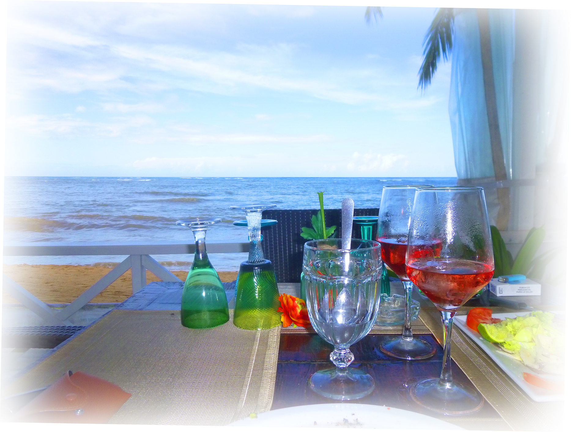 Le parking du Paseo, rempli à ras bord de voitures ressemble à nouveau à un parking oubliant son rôle insolite quoique fort seyant, de piscine municipale. Je retrouve ma petite famille, Mimi et Tatoo, court vite faire un gros bisou à ma copine Clotilde qui se remet doucement des durs moments passés à éponger ses petits bungalows que n’a pas épargnés le rio en folie. Rencontre Claude et Cristine (sans h) du Parquecito, Thierry qui s’est égaré loin de sa Voile Blanche et sa place des Lices. Un bon moment en toute amitié à refaire le monde, trouver la solution, dire du mal (un petit peu), s’émerveiller, se plaindre et avouer que l’on est bien ici. A l’heure (largement passée) du déjeuner, la Yucca Caliente nous fait audacieusement de l’œil de l’autre côté de la route. C’est un très bel établissement, chic, chaleureux, élégant mais tout en décontraction avec en toile de fond le bleu de l’océan. Guido, le patron italien nous accueille avec beaucoup de gentillesse et c’est le même garçon, avec sa bonne bouille, en place depuis la nuit des temps qui prend notre commande.