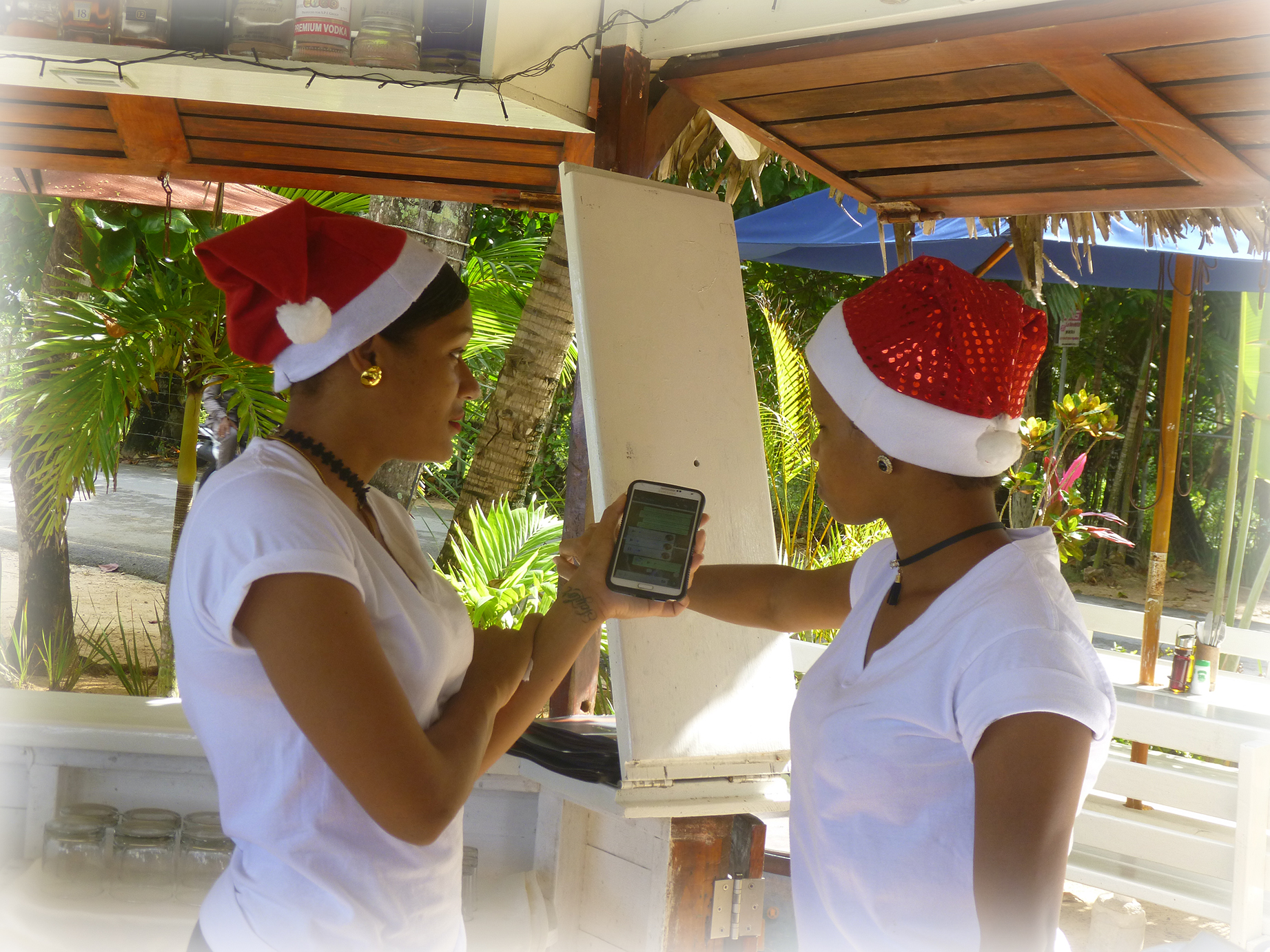 Encore un peu timide, un peu frileux…. le village se prépare pour accueillir Papa Noel et son flot de touristes, avides de passer Noel aux Caraibes. Tant bien que mal, le temps a fini par se rétablir et à reprendre son cours normal, alternance logique de ciel bleu, chaleur, soleil et petites averses. Dans les magasins, on s’agite à tout va, on vérifie le stock et on s’affiche, un sourire inaltérable sur le visage, c’est qu’il faut faire bonne impression, non mais….. Dans les rues, dès la tombée de la nuit, de ravissantes guirlandes saluent les badauds et réchauffent l’atmosphère.