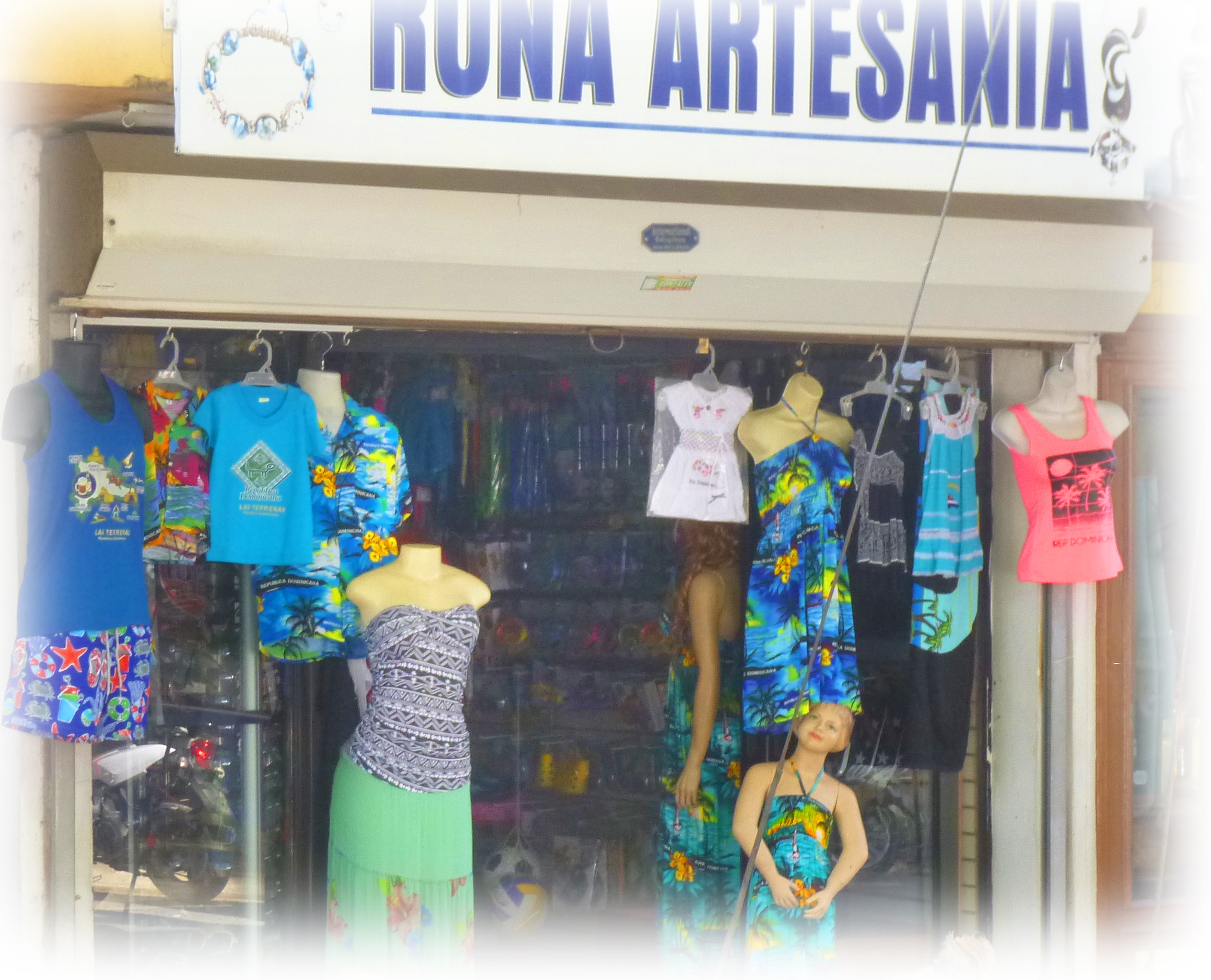 Angela, c’est la maman de Simone des Trois Caravelles. Dans sa petite boutique, des pareos, des bijhoux d’ambre et Larimar, des objets artisanaux et des tongs Havaiana et Ipanema.