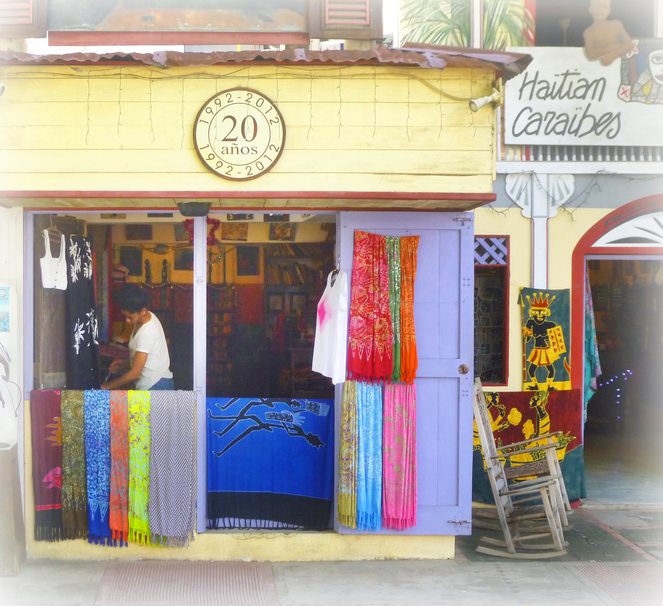 A côté de la Boulangerie Française, une des toutes premières boutiques du Village, la Galerie de Claude Lachamps, objets artisanaux, pareos, toiles d’artistes haitiens et dominicains de renom et superbe cave à cigares.