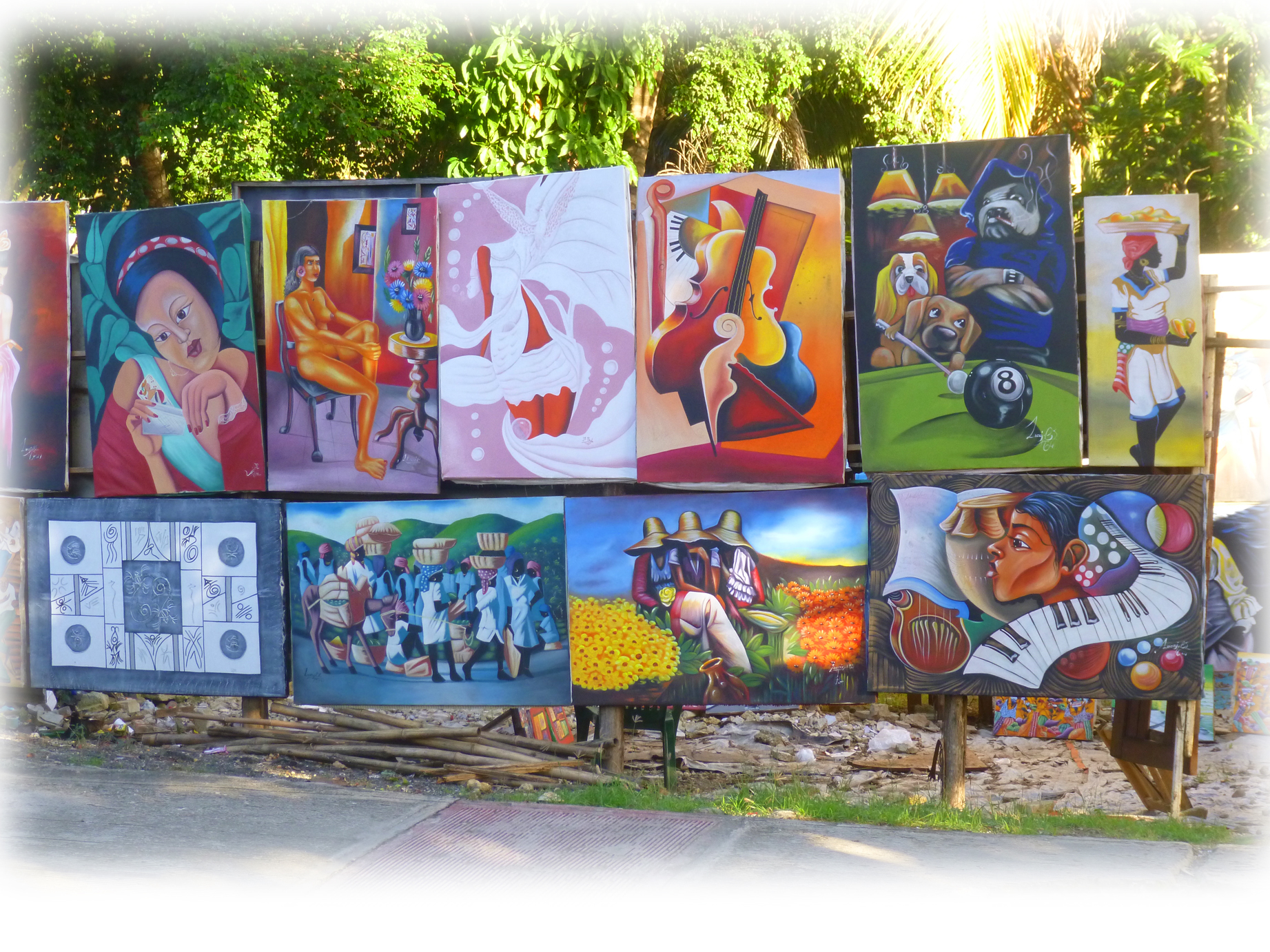 Les peintres haitiens peuplent les rues. Leurs toiles colorées constituent autant de beaux souvenirs.