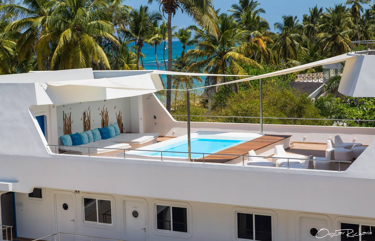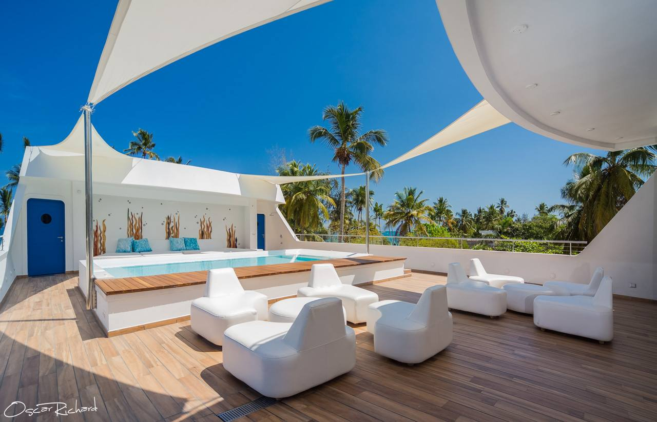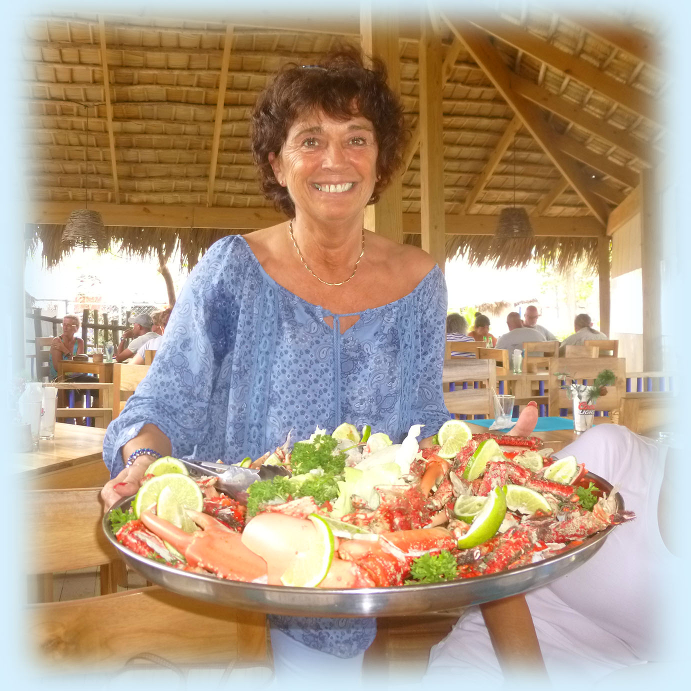 Quand on a la chance de recevoir la visite d’amis lointains, d’une amie venue de loin, on en profite pour refaire le tour du paysage et redécouvrir des endroits un peu oubliés. Ce fut le cas du sublime Porto, sur la belle plage de Portillo, à quelques mètres de la mer. Avez-vous déjà vu quelque chose d’aussi beau, d’aussi raffiné, d’aussi chic tout en restant terriblement bohème. La déco est juste sensationnelle, tendance indo-africain-asiatico-caraibes, savant mélange de matières nobles et belles et chères et de délicieux cadeaux de la nature, de grandes, somptueuses poteries délicates et de bois flotté, de belles tentures soyeuses et de rideaux de coquillages et de graines. Une armada de petits bateaux colorés a décidé de toiser l’océan tout proche, de le prendre de haut et se pavanent suspendus au superbe plafond. Les coins repos moelleux et cocooning se multiplient à l’infini, le teck réchauffé de jolis coussins joue la vedette à côté d’autres bois exotiques remarquables, de meubles en résine très tendance ou de l’osier naturel. La terrasse, près du beau bateau bleu déguisé en bar splendide est posée sur le sable fin de la magnifique plage ourlant l’océan aux eaux chaudes et cristallines. Par ci, par là, des chaises longues, des parasols, élégant mobilier de plage de bois et de paille invitent à la paresse. Le beau parquet délicatement teinté du resto repose sur des pilotis, les tables sont joliment dressées et, clou de la visite, les toilettes sont à tomber raides….. Nous n’avions prévu que d’y prendre un verre, retenues ailleurs pour le déjeuner. Ce fut un moment très agréable dans un décor absolument divin sans aucune faute de goût. Un vrai régal pour les yeux. Ca y est j’en suis amoureuse. J’adore!!!!!