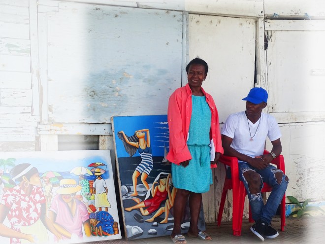 Au hasard d’une balade, difficile de ne pas croiser le chemin d’une des figures emblématiques de Las Terrenas. Ramon, l’œil mauvais mais doux comme un agneau, Bomba, le fana des champignons hallucinogènes, le tout petit marchand d’herbes aromatiques ou de jolis paniers d’osier, selon les jours. Je l’ai toujours connu, identique, il n’a pas d’âge celui-là et pourtant il en fait des kilomètres chaque jour depuis Limon pour vendre ses trésors aux restos ou aux touristes. Sarah, l’unique, la courageuse et belle Sarah à la gouaille légendaire. Elle, je l’adore tout comme son petit lolo Paco-Mer. Et puis, Rosita bien sûr, l’artiste-peintre qui s’est installée avec ses jolies toiles au bord de l’eau, calle Carmen. Un vrai talent, une belle personne.