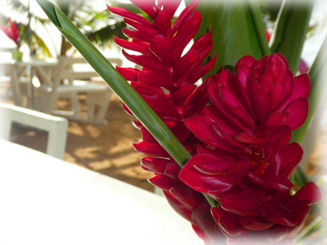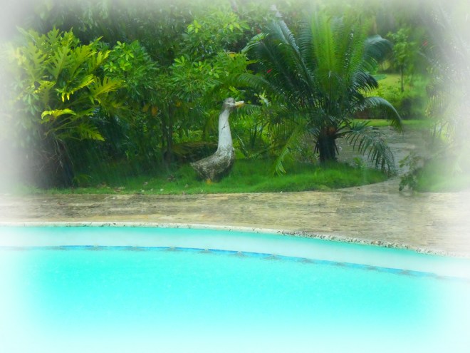 ….. Et puis, il y a des jours où tout va bien. Le ciel nous semble plus bleu, les petits soucis du quotidien s’estompent devant la réalité et font place à une belle grosse bouffée de bonheur. Isaac nous a boudés. Et c’est déjà suffisant pour se sentir mieux. OK, il nous a copieusement arrosé le bougre ou du moins ce qu’il en restait. Déçu de s’être débilité dans la mer des Caraibes, il s’est vengé en nous balançant du mieux qu’il le pouvait des trombes d’eau sur le coin du nez. On s’en fout. Même pas peur, et notre belle végétation en a profité. Mon jardin massacré par la luz (vous vous souvenez) est plus beau que jamais, les bananiers longtemps boudeurs ont fait plein de BB et dans la foulée plein de régimes de bananes. Rien qu’hier, j’en ai compté 22…. Qui vont tous murir en même temps….. Si le cœur vous en dit… ah non, zut vous êtes trop loin !