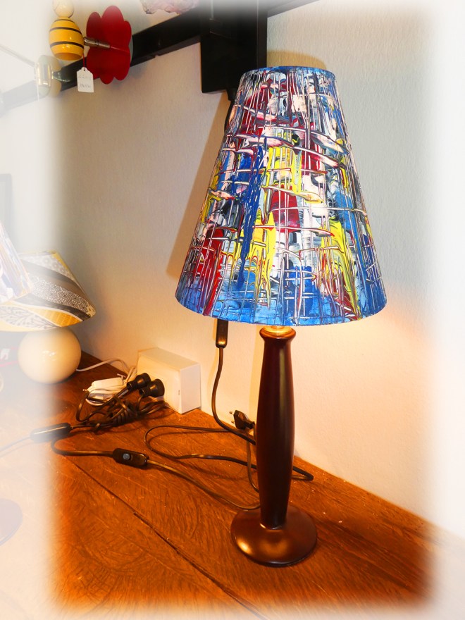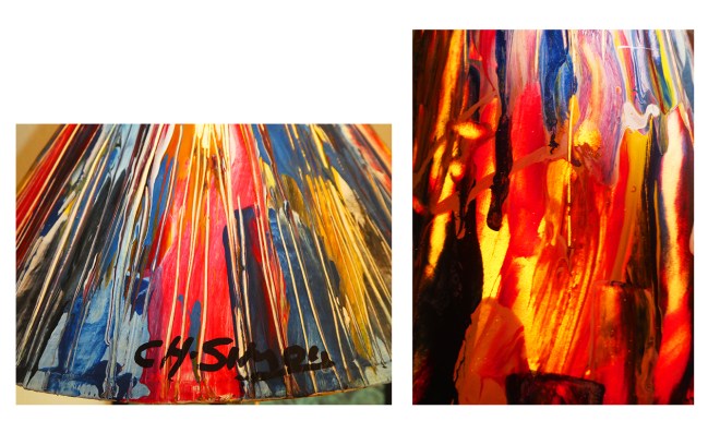 L’atelier-boutique de Melissa est situe au Paseo et, son voisin n’est autre que Charlie Simon, peintre talentueux que l’on ne présente plus. Vous voyez où je veux en venir…. Charlie, peintre, toile, abat-jours…. Deux ans qu’elle le harcèle pour qu’il accepte de travailler avec elle en mettant son art au service de ses abat-jours….2 ans. Puis, un jour, il a craqué. Pour le plus grand plaisir de Melissa et le nôtre, il a dit oui et depuis quelques jours, sur les rayonnages de Cinco y mas de sublimes lampes signées Charlie Simon côtoient les créations de Melissa. Le résultat est juste bluffant. Charlie peint directement sur les toiles blanches montées sur l’abat-jour. On y retrouve sa patte unique, un séduisant travail, lumineux et coloré, très hétéroclite, qui oscille entre naif, pointillisme, impressionnisme. Sa peinture-fusion comme il se plait à la qualifier est inspirée par son vécu et s’articule autour du glamour de ses exquis visages de femme, sa signature, qu’il compte reproduire sur les lampes et d’un impressionnisme étonnamment juste et délicat.