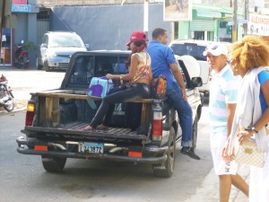 Puis les yeux sont inévitablement attirés par le monde de la rue. Ses boutiques de bric et de broc aux toits improbables, les vieux assis sur leur chaise en plastique, les enfants si beaux qui jouent derrière les grilles des petites cases proprettes aux couleurs acidulées, les viralatas qui partent en quête de nourriture. Les guaguas se rassemblent, débordant de légumes, fleurs, souliers, vêtements colorés, bassines en plastiques, elles animent chaque jour les calle du village, se mêlant au joyeux chaos des motoconchos pétaradants, à la musique, poussée à fond, et aux odeurs alléchantes de pollo al carbon. Venues de la montagne, de Samana, Santiago, Santo Domingo, les guaguas parcourent la campagne dominicaine et de village en village proposent leur marchandise tant convoitée, fruits gorgés de soleil, ustensiles de cuisine colorés ou en fer blanc, robes de princesse, fleurs multicolores… Autochtones, touristes et résidents adorent farfouiller et dénicher, pour leur plus grande fierté l’objet rare, polo Lacoste (presque vrai) à 50 pesos, micro jupe en jean griffée DKNW qui va faire un malheur avec ce petit top sans marque mais tellement tendance. Parmi les résidents, beaucoup s’y affichent sans fausse honte, d’autres y viennent en catimini, priant le bon Dieu que les copines ne les y surprennent pas. Et pourtant, le déplacement en vaut la peine, ne serait-ce que pour le folklore, le coup d’oeil, l’ambiance bon enfant… les guaguas, c’est tout Las Terrenas. C’est trop mignon.