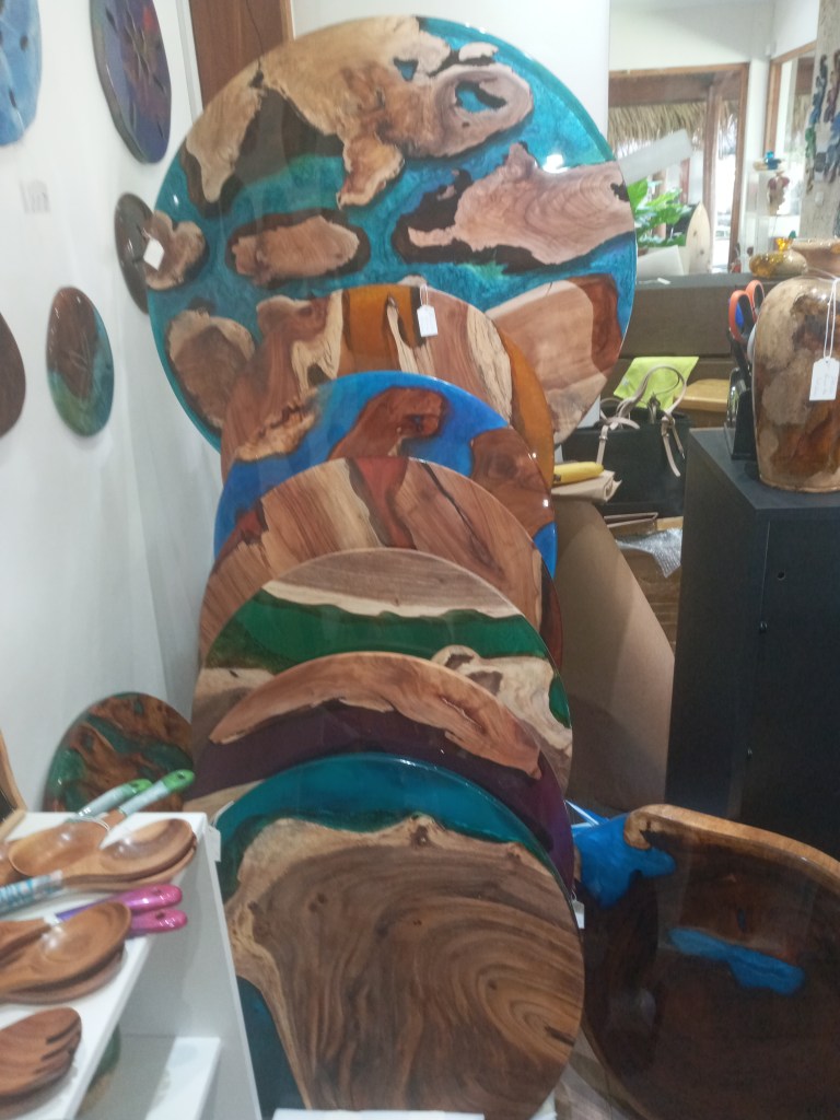 C’est la première fois qu’ils prennent le temps de flâner ainsi sur les trottoirs, loin de la plage et de son sable blond et ils n’ont pas trop de leurs 4 paires d’yeux pour savourer tout ce qui les entoure. Et ça commence direct avec la belle galerie de Claude Lachamp Haitian Caraibe Gallery. Passionné par Haiti et amoureux inconditionnel des fabuleux peintres de ce pays, il expose dans sa galerie de très belles toiles colorées d’artistes reconnus ou de jeunes talents. Une gamme pointue de cigares dominicains et de très beaux paréos retiennent également l’attention de la petite famille… La Boulangerie française, ça les fait marrer si loin de chez eux. Ils n’imaginent pas notre plaisir à nous pauvres expatriés de croquer chaque jour dans une baguette bien croustillante ou un croissant bien beurré.