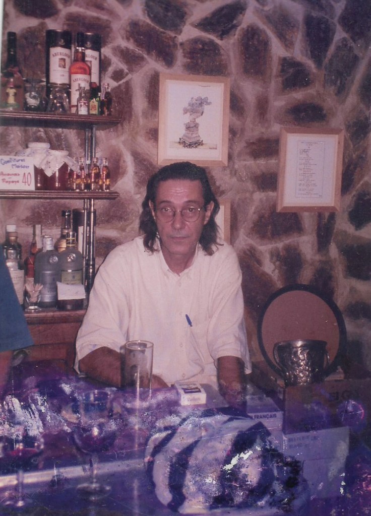 Puis l’idée est arrivée tout naturellement. Michel est venu s’installer chez moi dans ce qu’il allait très vite baptiser le Château de Feuilles. Au début, un peu timide entre ces murs qu’il n’avait pas choisis, il est vite tombé en amour pour ce lieu atypique, bohème, facile. Les chiens l’ont adoré de suite. Bien sûr, il n’a pas abandonné pour autant sa vie de patachon, Barrio le matin, déjeuner frugal à la maison (il a fallu établir des horaires, monsieur ne connaissait pas), après-midi bar de plage, soirée au Syroz… mais oui du coup je suivais et, mémorables dimanches avec le méga-Voleau-tour. Un parcours très alcoolisé qui nous menait de Popy au fin fond de Coson. Une connivence indispensable alors pour une vie tout en complicité où l’on ne s’habillait que de blanc.