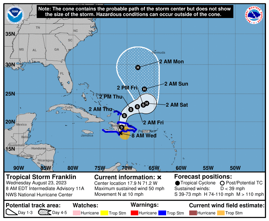 En attendant, Franklin arrose le sud du pays. En observant sa trajectoire actuelle, il semblerait qu’elle ne fasse que nous frôler, et c’est tant mieux. Mais, nous ne le saurons que plus tard, vers 16h, 17h… Moi je dis bravo au gouvernement et au maire de LT d’avoir osé prendre des mesures de sécurité et alerter la population même si l’avenir nous montrera ou pas que c’était inutile.