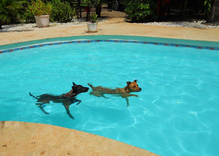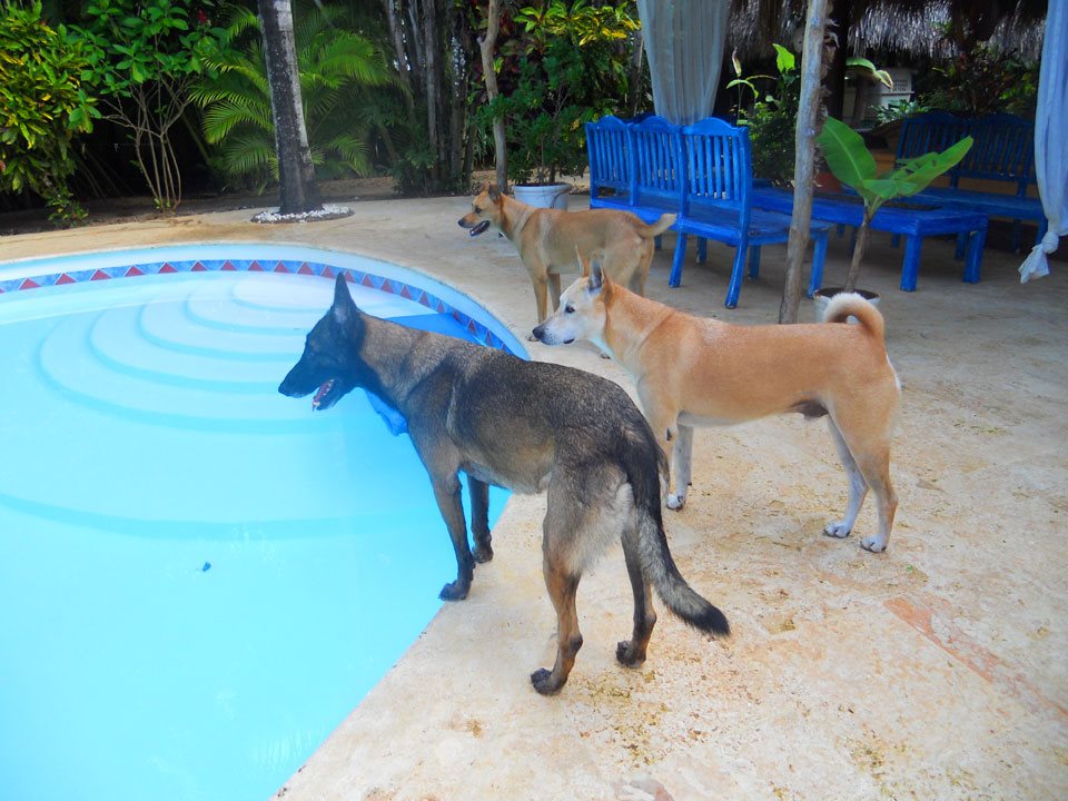 Chaque soir, vers 6 ou 7 heures, en catimini, elle s’échappait du bungalow et venait gratter à ma porte. Mais je n’en voulais pas, pour moi 4 bb toutous, c’était largement suffisant, en plus, Claude aimait sa chienne, belle et très douée. Oui mais, la douce Cheyenne insista tant et tant, encore et encore qu’un soir, j’ai craqué, en doutiez-vous… je lui ai ouvert la porte, elle a sauté sur le canapé, m’a couverte de léchous… c’en était fini de ma « ferme » décision. En quelques jours, après avoir négocié avec Claude, pas content du tout, la jolie chienne faisait partie de ma famille. Câlins à n’en plus finir, petits plats mijotés, longues balades sur la plage, longueurs dans la piscine, canapé douillet et dodo avec maman, le rêve quoi. Bizarrement, mes 4 viralatas l’ont acceptée sans aucun problème.