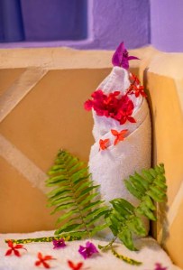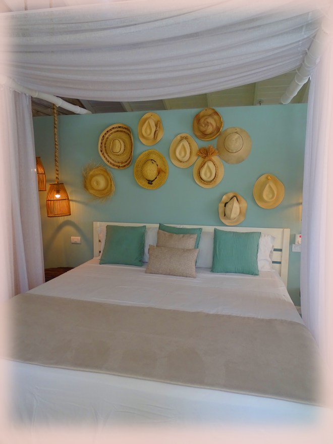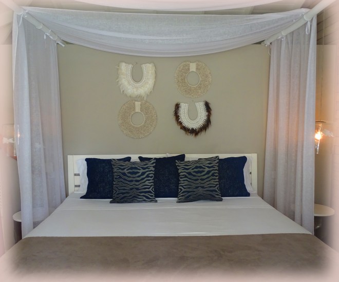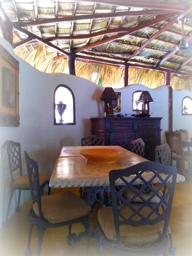 Tableaux signés de grands maîtres ou de Cary, ou encore de la maman de Marie-Claude, maquette du pavillon de Chine de l’expo universelle de Paris de 1908, collection surréaliste de peintures indiennes et asiatique, masques africains, boîte à musique napoléonienne, marionnettes de XVIII, protection de samourais japonnais, vases précieux ou insolites, bahuts, vaisseliers, armoires rustiques, amoureusement patinés par Sophie (https://dorislasterrenas.com/2016/08/07/la-nouvelle-vie-de-sophie/)ou meubles précieux en ivoire, antiquités uniques, mais aussi, nichés dans la bibliothèque, cannetons turbulents ou cachés sous un escalier, troupeau de moutons grandeur nature….. La déco est signée Marie Claude, délicieux fouillis extrêmement réfléchi mêlant avec audace et beaucoup de goût les pièces les plus éclectiques pour un résultat bluffant de beauté de simplicité et de sophistication. Par la majestuosité de son environnement et son panorama époustouflant, mais aussi par son naturel et son côté intemporel, son calme et sa tranquillité, Peninsula House attire une clientèle huppée ainsi que de nombreux shootings photo, des films, des séries télé et même des télé-réalités….. Marie Claude, Carry et Thomas sont aux petits soins pour leurs hôtes pour lesquels rien n’est trop beau. Et, si le copieux petit déjeuner et le dîner concocté par Carry sont servis sur la terrasse, pour le déjeuner, une navette les conduit, si le cœur leur en dit au superbe The Beach (https://dorislasterrenas.com/2017/02/17/intemporel-subtil-et-delicieux-the-beach-restaurant-un-must-a-savourer-sans-moderation/) sur la magnifique plage de Coson, partie intégrante de l’établissement, où une table leur est toujours réservée.