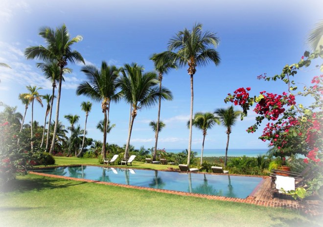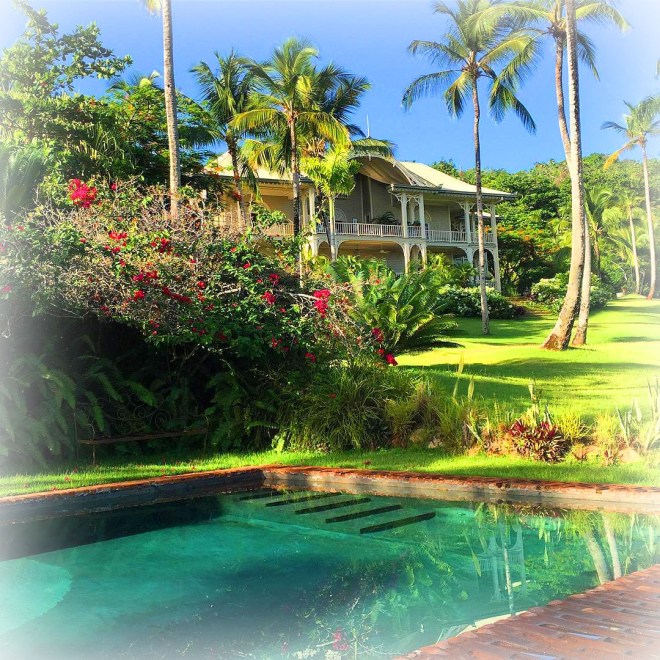 Très vite, amoureux fou de l’endroit, ils dénichent presque par hasard le lieu idyllique et sauvage qui correspond pile poil à leur attente, 70000 m2 de forêt primaire, des palmiers royaux, des cocotiers des arbres à pain, des flamboyants, des manguiers, des pendanus, un plateau verdoyant…. panorama époustouflant, avec en toile de fond le bleu de l’océan. Avec amour et passion, ils pensent, imaginent, rêvent leur maison sertie dans ce jardin luxuriant grandiose et naturel. C’est un ami de Marie-Claude, l’illustre architecte français Serge Robin qui en signera le design sophistiqué.