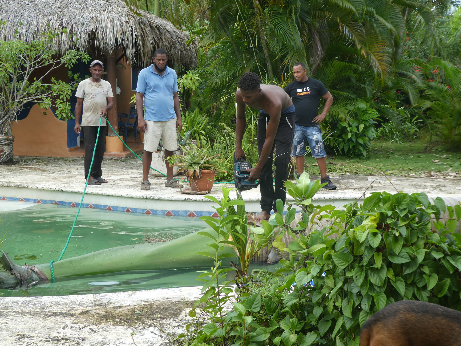 Chaque soir, vers 6 ou 7 heures, en catimini, elle s’échappait du bungalow et venait gratter à ma porte. Mais je n’en voulais pas, pour moi 4 bb toutous, c’était largement suffisant, en plus, Claude aimait sa chienne, belle et très douée. Oui mais, la douce Cheyenne insista tant et tant, encore et encore qu’un soir, j’ai craqué, en doutiez-vous… je lui ai ouvert la porte, elle a sauté sur le canapé, m’a couverte de léchous… c’en était fini de ma « ferme » décision. En quelques jours, après avoir négocié avec Claude, pas content du tout, la jolie chienne faisait partie de ma famille. Câlins à n’en plus finir, petits plats mijotés, longues balades sur la plage, longueurs dans la piscine, canapé douillet et dodo avec maman, le rêve quoi. Bizarrement, mes 4 viralatas l’ont acceptée sans aucun problème.
