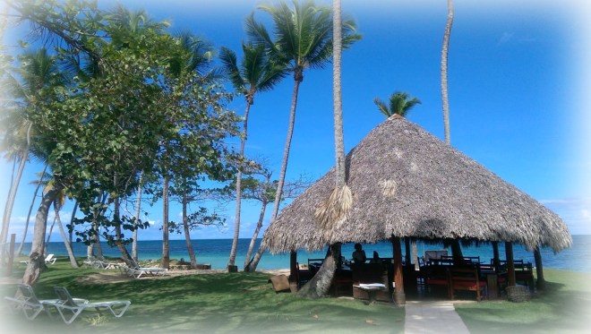 Je profite de leur sommeil pour glisser, en catimini, une parenthèse à l’attention ceux qui ne connaissent pas, un clin d’œil à ceux qui ont la chance de connaitre, et qui comme moi raffolent de ce petit village du bout du monde. Las Terrenas s’affiche comme l’antithèse des plages bétonnées, surpeuplées du légendaire Punta cana. Dans notre tout petit coin de paradis, les vastes plages sont le plus souvent vierges, à se demander où se cachent les vacanciers, de plus en plus nombreux à savourer la quiétude de cet endroit si différent. Il faut dire que longtemps ignorée, voire boudée par touristes et autochtones, Las Terrenas a, aujourd’hui, très nettement le vent en poupe. Des gens de tous poils et de toutes nationalités se pressent à qui mieux mieux pour goûter à cette République Dominicaine plus intime et confidentielle. Et pourtant, personne ne se marche sur les pieds. Longtemps demeuré dans son jus, avec ses avantages et ses inconvénients, le village sous l’impulsion notamment d’un maire à la hauteur s’est nettement manucuré. Et si l’on y adore toujours les petites échoppes colorées toute de guingois, les étals de bric et de broc débordant de fruits et de légumes ensoleillés, qui ne tiennent que par l’opération du St Esprit, on apprécie la propreté retrouvée des rues et des ruelles, le confort de routes asphaltées et le bon sens d’une circulation plus réglementée. Je suis arrivée il y a près de 20 ans maintenant et même si, bien sûr, beaucoup de choses ont changé, je dirais plutôt évolué, l’âme du village reste intacte. On y ressent la même sérénité, la même douceur de vivre, la même authenticité et surtout la même surprenante entente entre toutes ces nationalités différentes, véritable melting-pot, kaléidoscope enchanté aux mille visages.