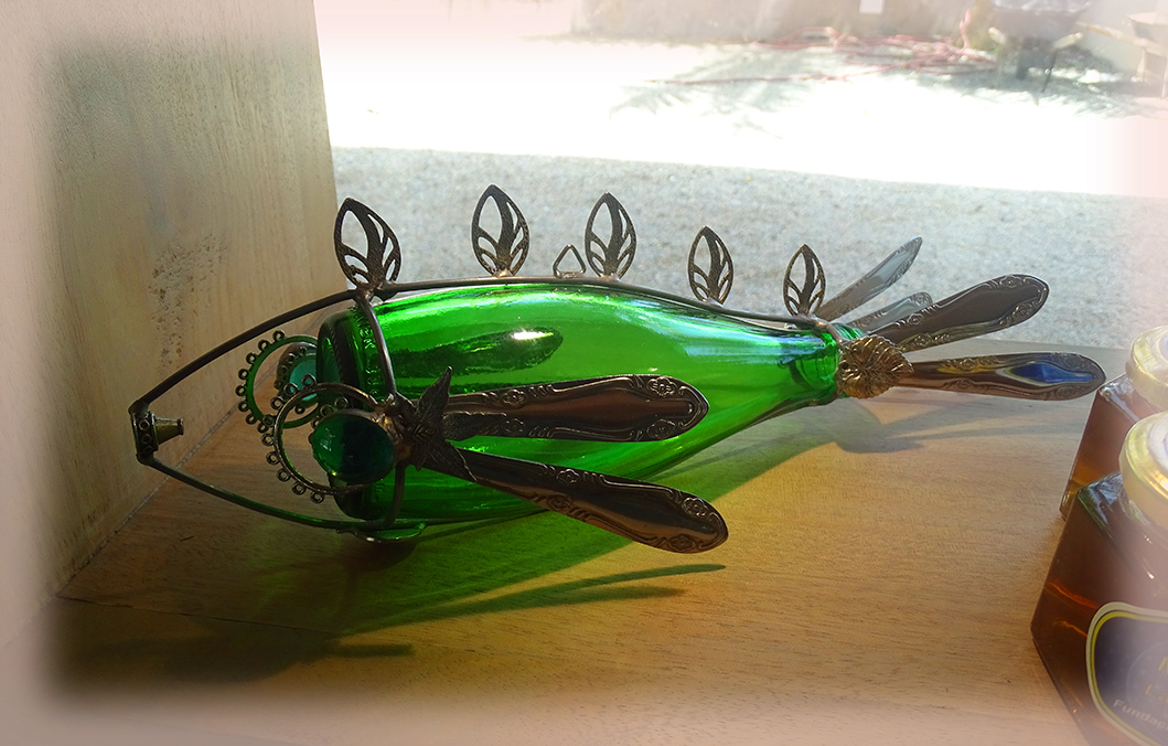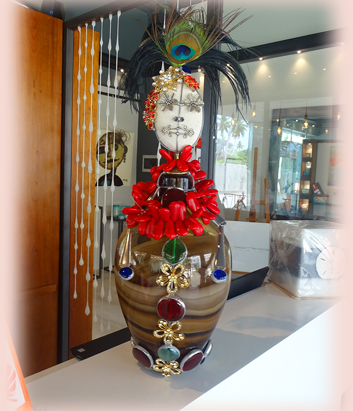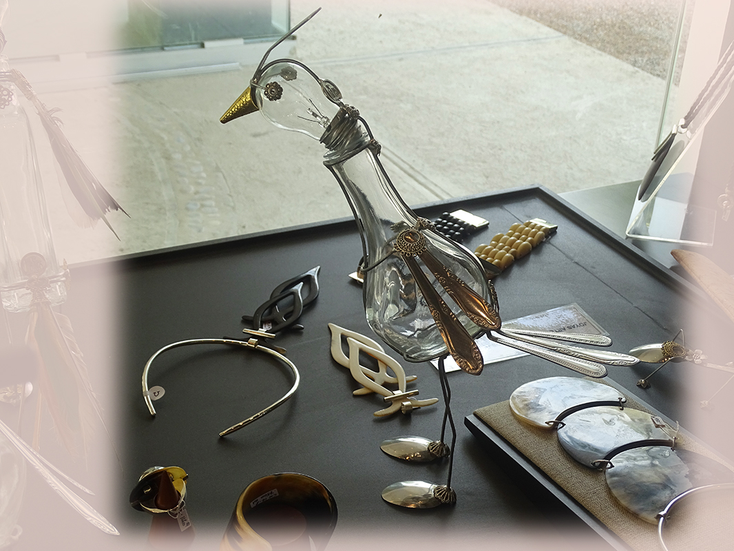 Comment ne pas succomber à l’exubérance de la délicieuse faune de Luis Riva, célèbre artiste dominicain. Un travail d’orfèvrerie déjanté qui marie avec audace bouteilles de verre, ampoules, bois de récupération, vases de cristal, fourchettes, cuillères et couteaux, boites de métal, capsules ….. pour donner naissance à des animaux magiques comme la petite fourmi toute mimi, le poisson tout vert ou les élégants échassiers un brin hautains…. à une poupée divine ou encore à des personnages haut en couleur du carnaval de La Vega.