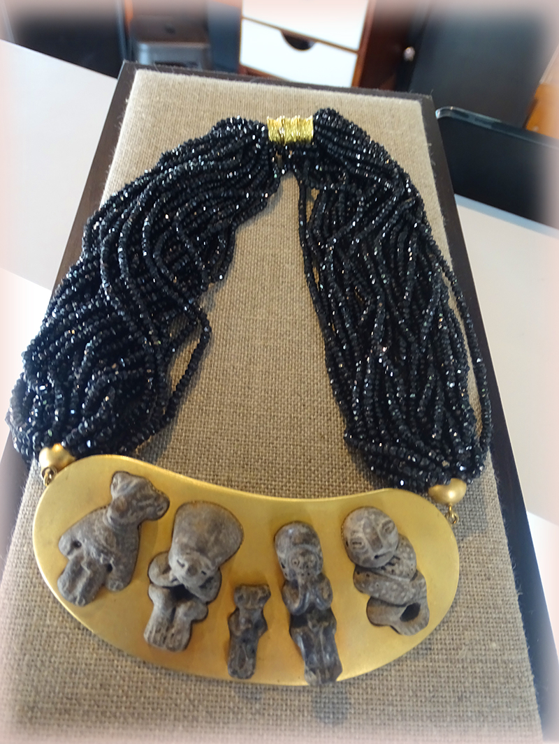 Paula est une jeune espagnole installée depuis de longues années à Las Terrenas. Eprise de voyages et de culture, elle a ramené de ses nombreux périples des trésors inouis, des pièces authentiques qu’elle transforme en bijoux fabuleux. Statuettes précolombiennes, osiris en bronze, céramique venue tout droit d’une pyramide égyptienne….. un univers précieux à découvrir d’urgence.