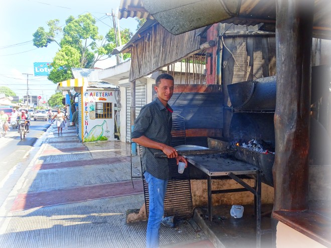 Puis les yeux sont inévitablement attirés par le monde de la rue. Ses boutiques de bric et de broc aux toits improbables, les vieux assis sur leur chaise en plastique, les enfants si beaux qui jouent derrière les grilles des petites cases proprettes aux couleurs acidulées, les viralatas qui partent en quête de nourriture. Les guaguas se rassemblent, débordant de légumes, fleurs, souliers, vêtements colorés, bassines en plastiques, elles animent chaque jour les calle du village, se mêlant au joyeux chaos des motoconchos pétaradants, à la musique, poussée à fond, et aux odeurs alléchantes de pollo al carbon. Venues de la montagne, de Samana, Santiago, Santo Domingo, les guaguas parcourent la campagne dominicaine et de village en village proposent leur marchandise tant convoitée, fruits gorgés de soleil, ustensiles de cuisine colorés ou en fer blanc, robes de princesse, fleurs multicolores… Autochtones, touristes et résidents adorent farfouiller et dénicher, pour leur plus grande fierté l’objet rare, polo Lacoste (presque vrai) à 50 pesos, micro jupe en jean griffée DKNW qui va faire un malheur avec ce petit top sans marque mais tellement tendance. Parmi les résidents, beaucoup s’y affichent sans fausse honte, d’autres y viennent en catimini, priant le bon Dieu que les copines ne les y surprennent pas. Et pourtant, le déplacement en vaut la peine, ne serait-ce que pour le folklore, le coup d’oeil, l’ambiance bon enfant… les guaguas, c’est tout Las Terrenas. C’est trop mignon.