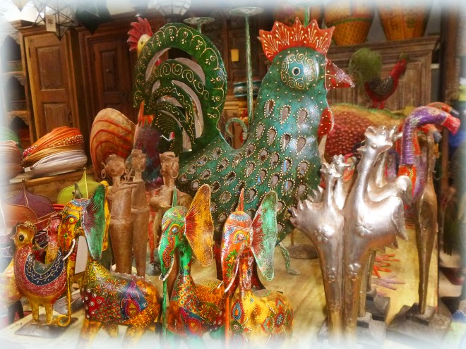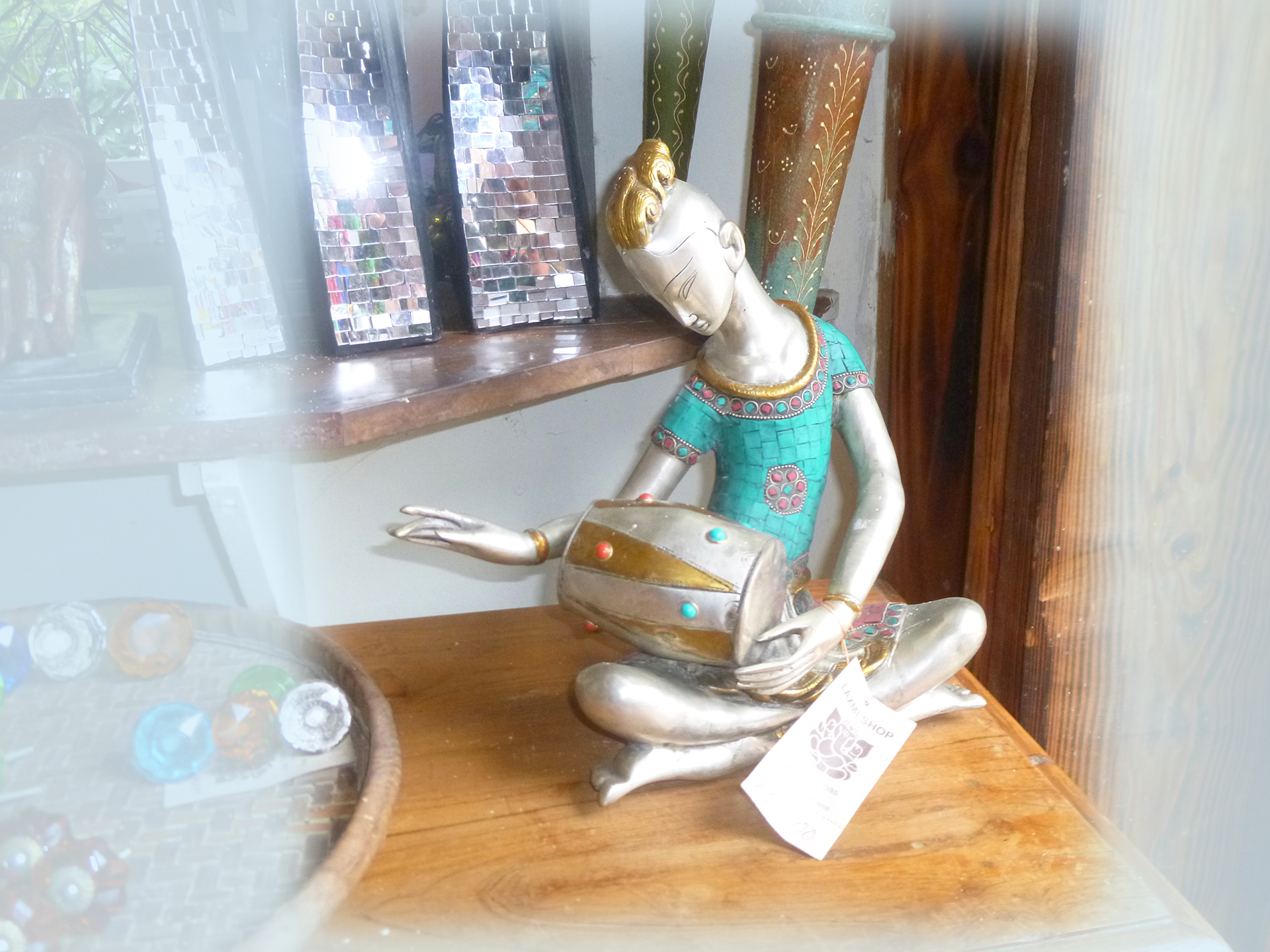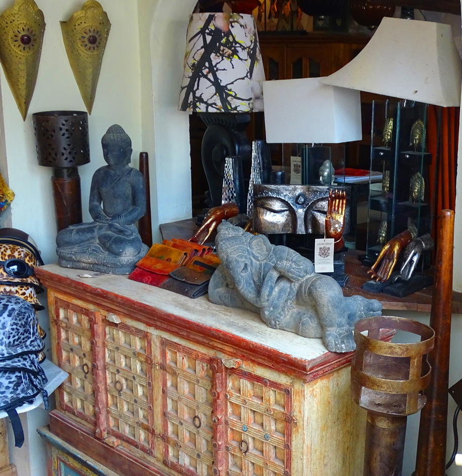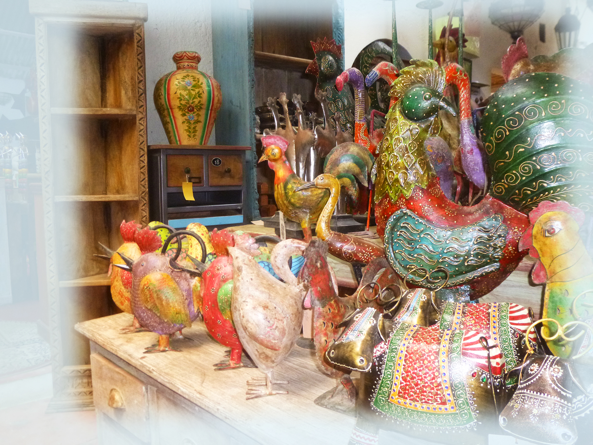Envie de vous évader…. vous allez me dire on est déjà au Paradis, alors quel besoin de s’évader? Pas tort, mais si pour quelques instants magiques, vous vous laissiez guider à travers l’histoire de l’Inde, ce presque continent, tout à tour rajpoute ou hindou, colonial ou moghol, mais toujours émouvant . Ce fastueux pays qui conjugue de façon exceptionnelle, histoire, traditions, religions, croyances, cultures…., un passé glorieux, un présent attachant et un futur prometteur. A moins que vous ne préfériez l’Indonésie, Bali, les habitants sublimes et les lagons paisibles. La passion de l’Inde et la quête de l’âme indonésienne de Josée se lisent dans les fabuleux objets coups d’coeur, grands ou tout petits, qu’elle déniche au coin d’une rue, d’un bazar, d’une échoppe, d’une fabrique, lors de ses voyages et qui envahissent son époustouflant espace de rêve, sa caverne d’Ali Baba.