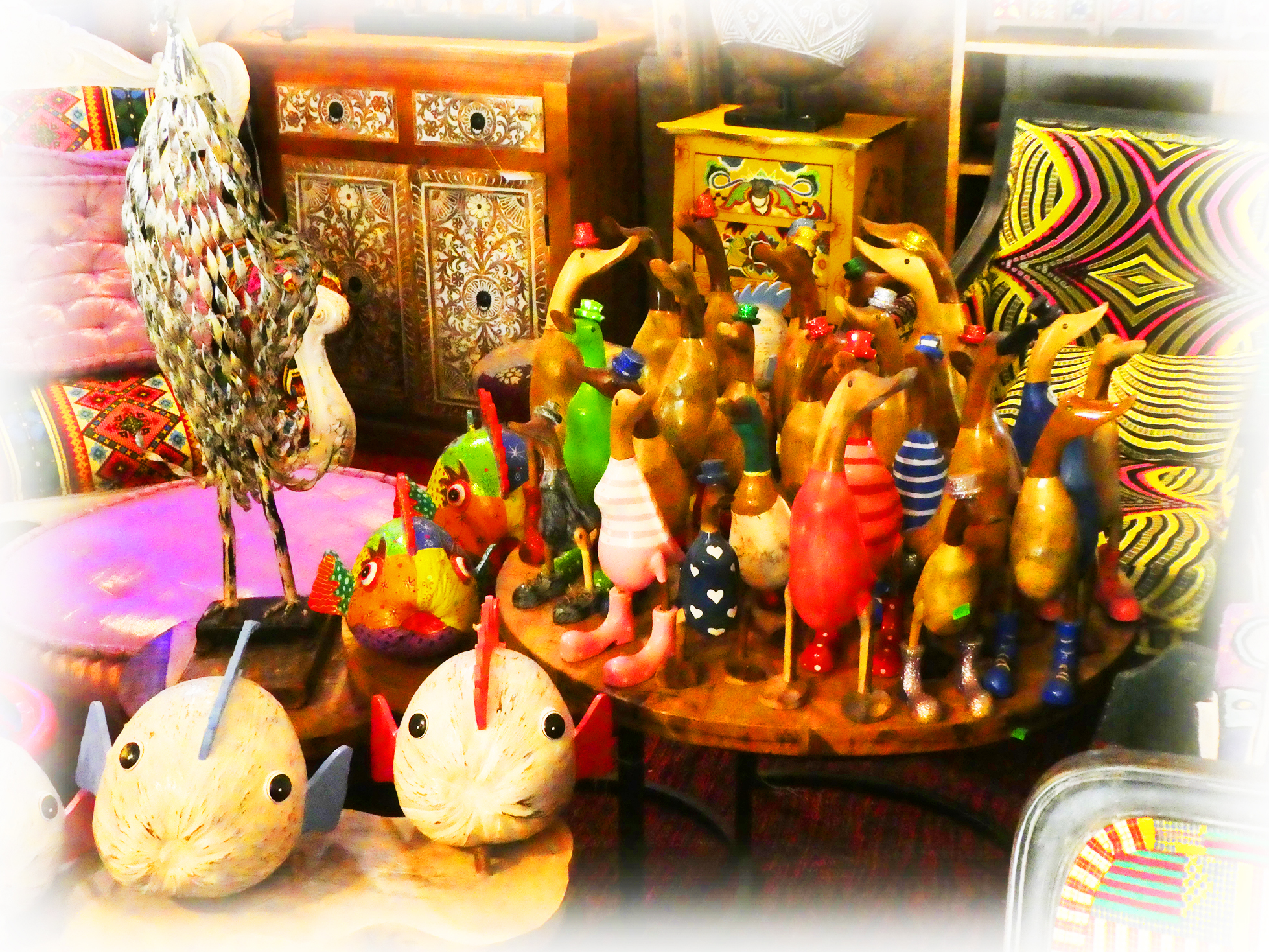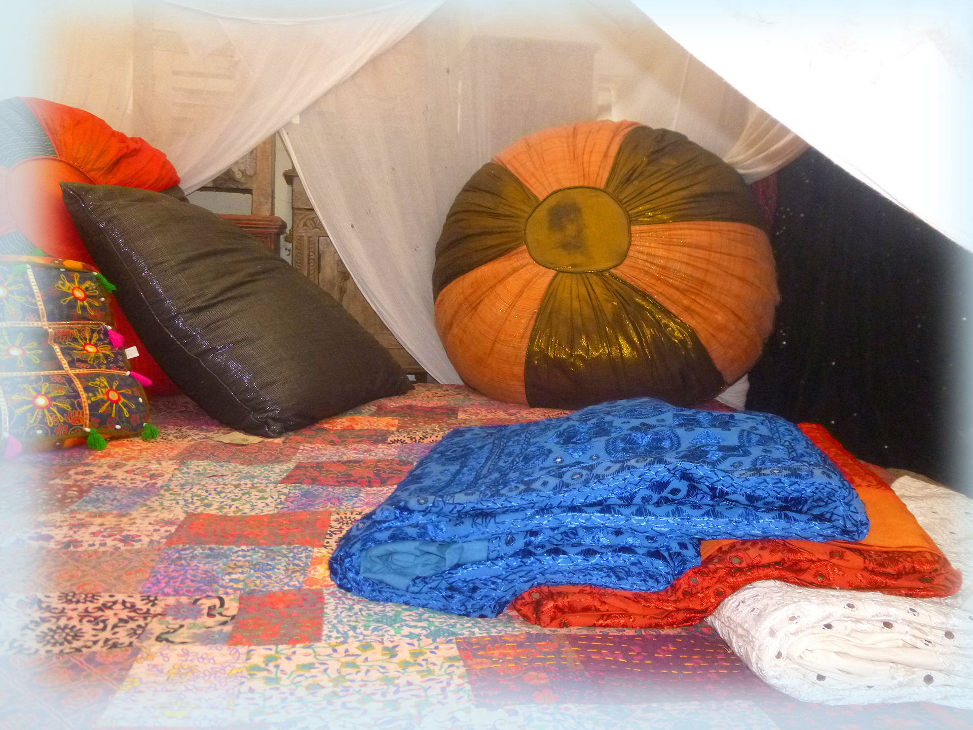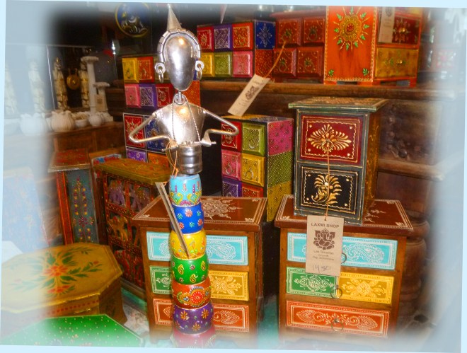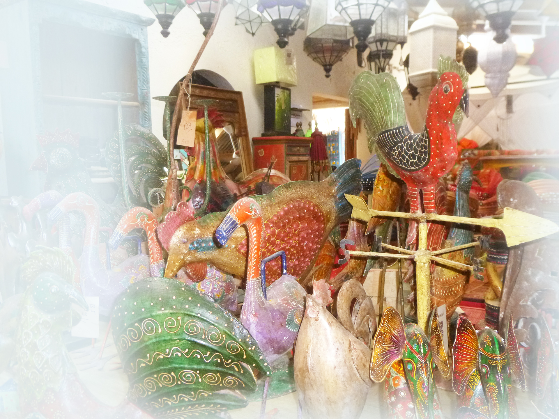 Envie de vous évader…. vous allez me dire on est déjà au Paradis, alors quel besoin de s’évader? Pas tort, mais si pour quelques instants magiques, vous vous laissiez guider à travers l’histoire de l’Inde, ce presque continent, tout à tour rajpoute ou hindou, colonial ou moghol, mais toujours émouvant . Ce fastueux pays qui conjugue de façon exceptionnelle, histoire, traditions, religions, croyances, cultures…., un passé glorieux, un présent attachant et un futur prometteur. A moins que vous ne préfériez l’Indonésie, Bali, les habitants sublimes et les lagons paisibles. La passion de l’Inde et la quête de l’âme indonésienne de Josée se lisent dans les fabuleux objets coups d’coeur, grands ou tout petits, qu’elle déniche au coin d’une rue, d’un bazar, d’une échoppe, d’une fabrique, lors de ses voyages et qui envahissent son époustouflant espace de rêve, sa caverne d’Ali Baba.