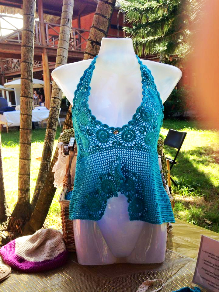 Elle est tombée dedans quand elle était toute jeune, à la naissance de sa fille plus précisément et depuis environ une année, elle y consacre tout son temps, et partage à présent sa passion avec d’autres amoureuses du crochet. En effet, avec beaucoup d’audace, elle vient de lancer sa ligne de vêtements et accessoires sur mesure en tricot : Arawak, tout un programme. Longues jupes fluides, maillots de bains sexy en diable, shorts glamour mais aussi jolis petits chapeaux, boucles d’oreille, il y en a pour tous les goûts et dans tous les coloris . Pour vous en convaincre, allez faire un petit tour sur sa page Facebook Arawak vêtements, vous allez être conquises. Bravo Katia, une initiative audacieuse comme on aimerait à en voir davantage.